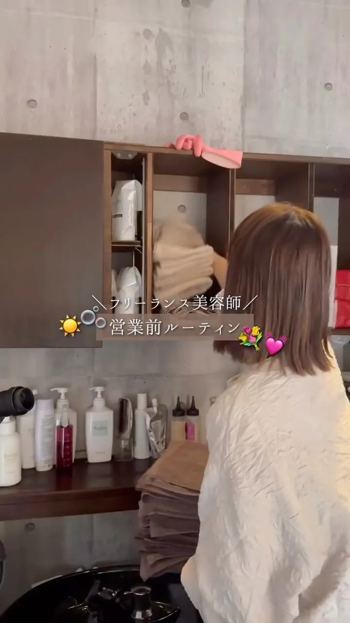 他の投稿はこちらから⇨@tipi__marieこんばんは、まりえです🐈🎀"フリーランス美容師の営業前ルーティン"をご紹介しています🌙🪞🧹Tipiではカウンセリングからお仕上げまで全てわたし1人が担当しております😌💓営…